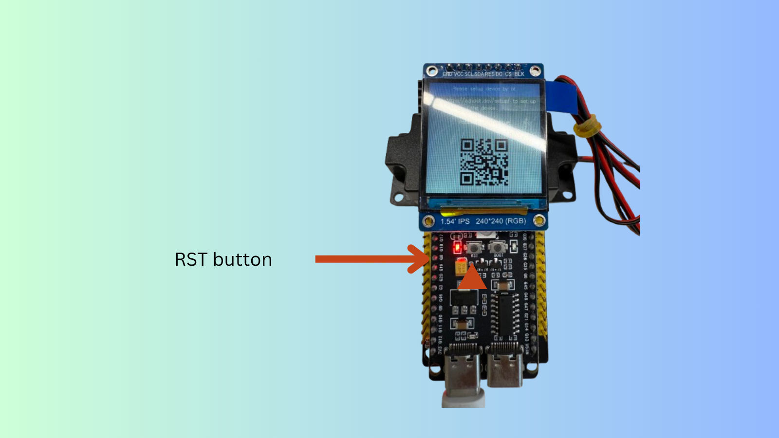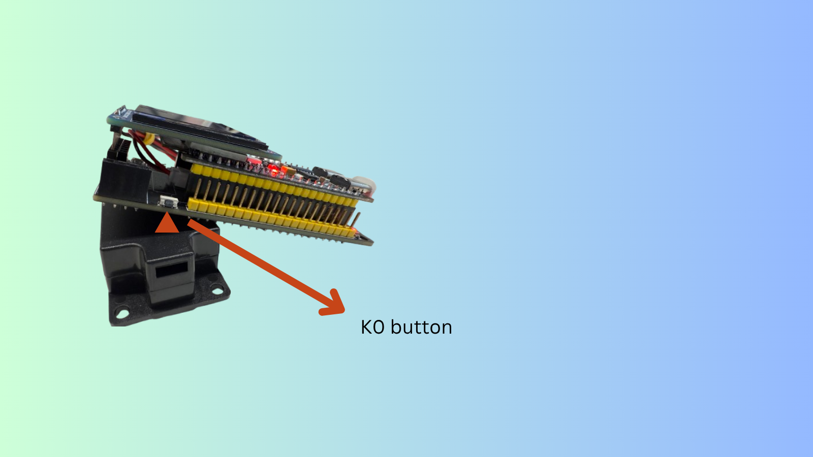 The RST button (located on the left side of the ESP32 development board) is used to restart the device. As mentioned above, it could also be used with K0 to configure or flash the device.