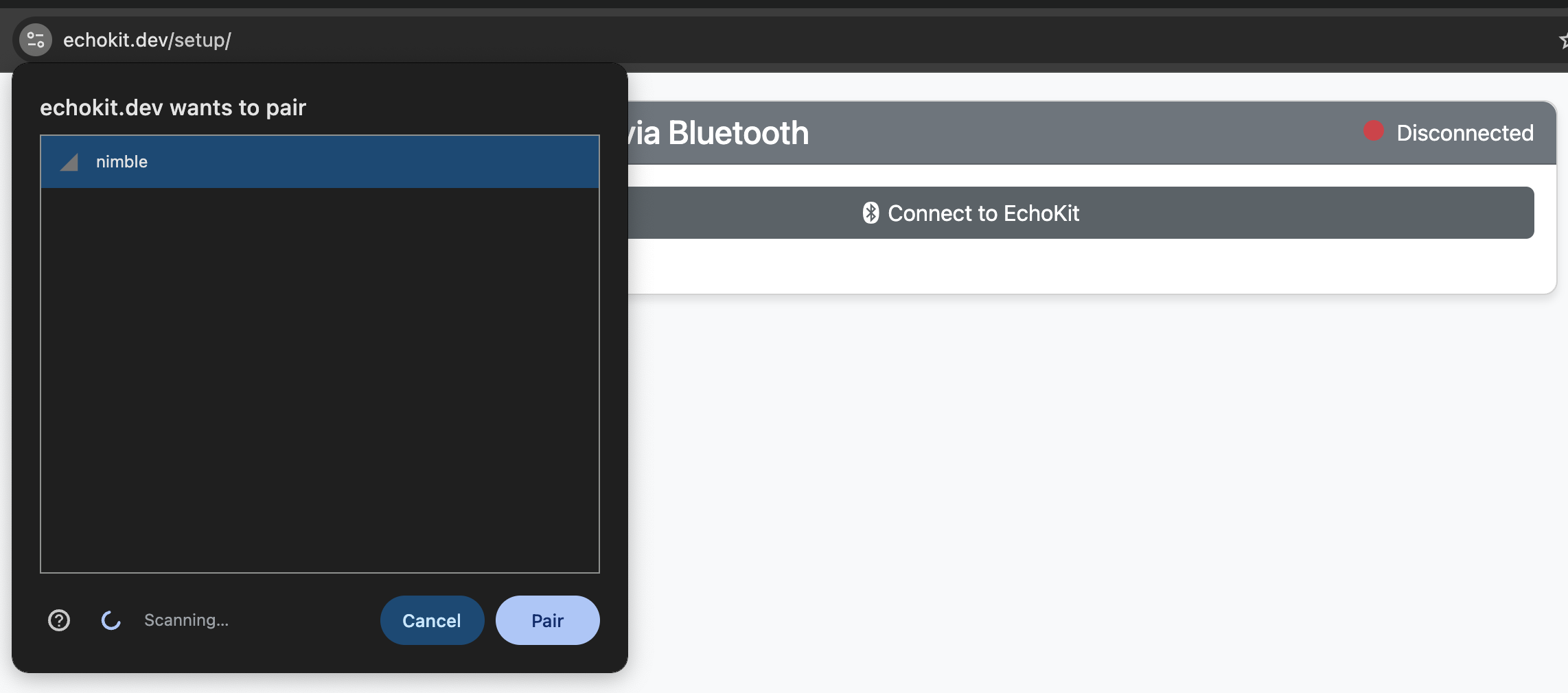 Click Connect to EchoKit to begin Bluetooth pairing.