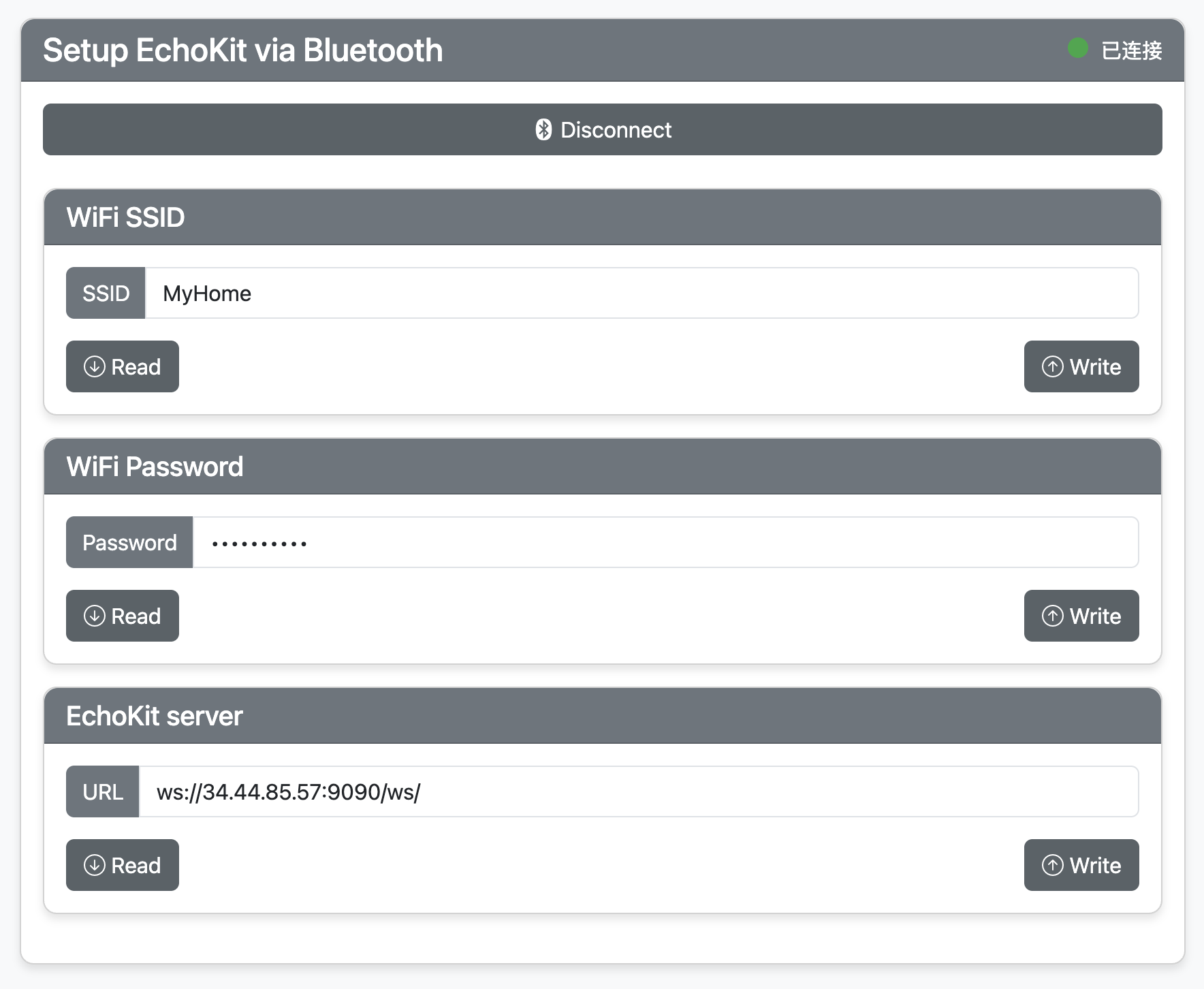 - EchoKit Server: The IP and port of the EchoKit Server you're connecting to. You can use our hosted servers depending on your location: